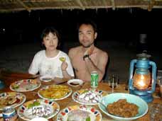 朝はニワトリの鳴き声で目覚め (時々、夜中の2時頃にも鳴くけど・・・) 夜は、ランプの明かりで夕食。 風が吹いていて毎日案外涼しい。