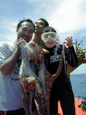 ![]() 今日海で買ったタコや、釣ってきたカスミアジ・・・毎日おいしい食事で、本当に幸せ者です。パンの実の天ぷらもおいしい!