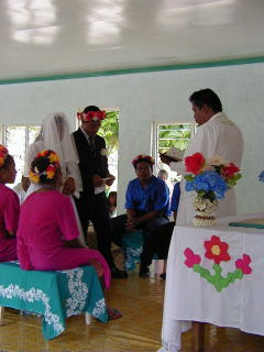 ![]() 村の教会。ウエディングドレスにタキシードは、街で借りてくる。伝統的な衣装で行われる事は少なくなった |