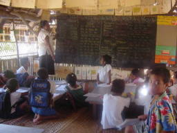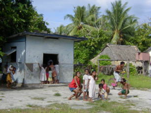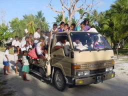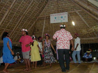 ![]() 隣のおばさんはキリバス髄一の歌手。 パーティでお祝いの歌を熱唱 |